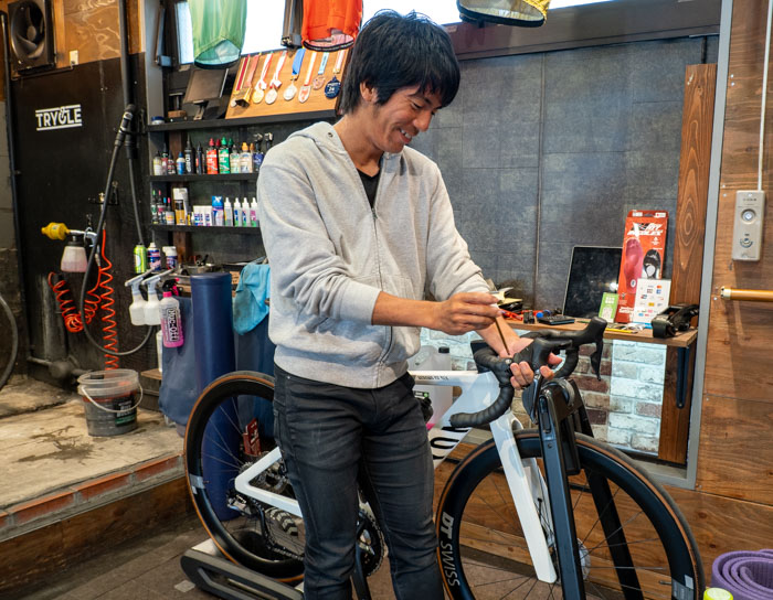 仮にフィッティングの結果、パーツ変更やバーテープの巻き直しが発生した場合、Trycleが併設されているというかTrycle店内なんで、そのまま作業していただけます。