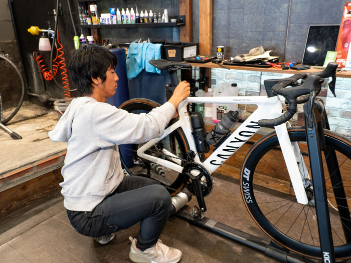 矢野口の自転車ショップTrycleさんの中にあるスペースでフィッティングをされてます。