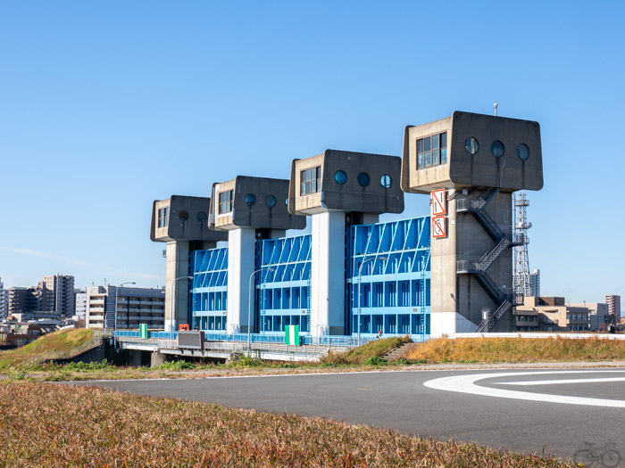 ひさしぶりの岩淵水門!相変わらず待ち合わせのメッカになっているようで、左右に座り込むサイクリストたちが数名おられました。