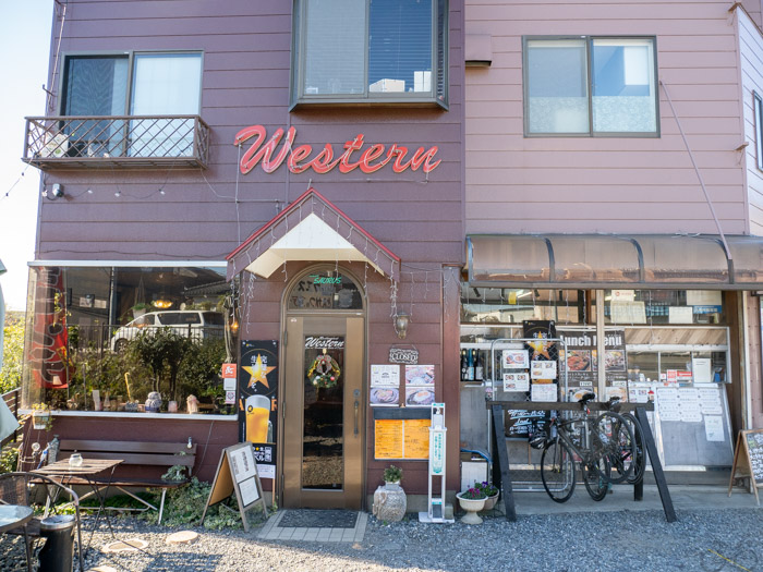 先ほどの秋ヶ瀬サーキットのあたりから脇道を少し進むと、すぐに目的のウエスタンに到着!