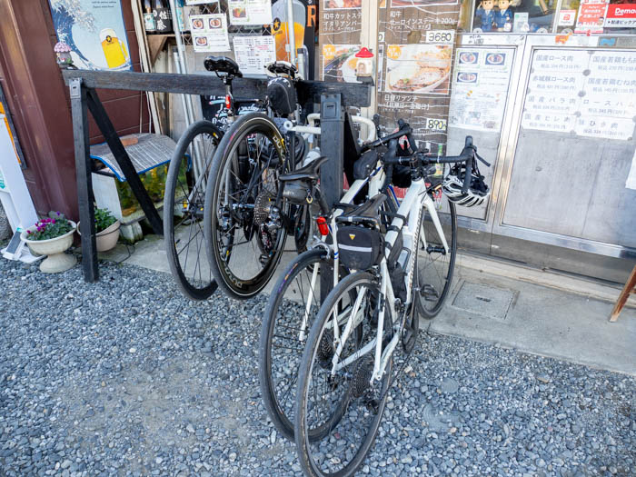食べ終わり一息していたら、なんと同じロードバイクグループでよく一緒に走っていたナリさん夫妻が登場!