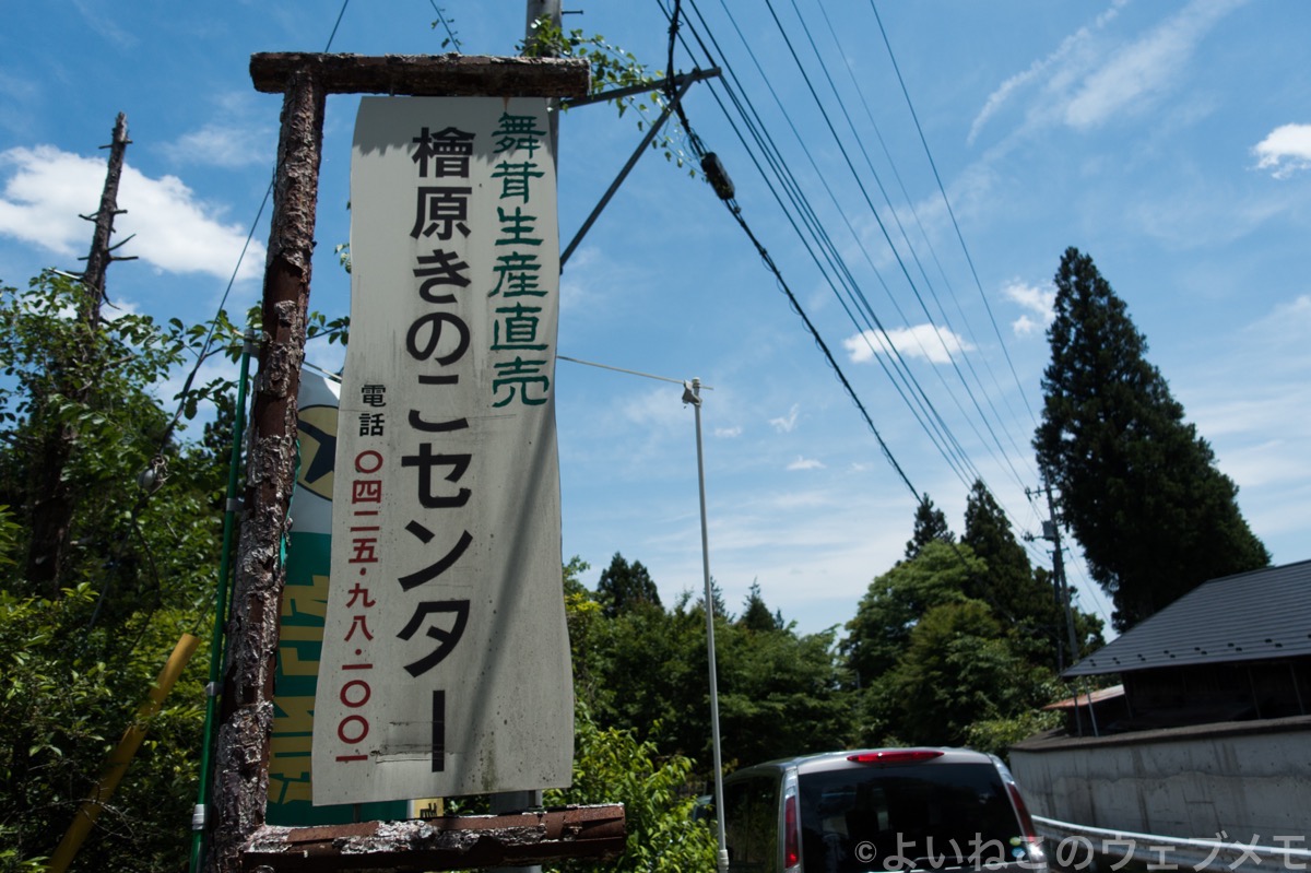 そのまま上がっていくと「マイタケ」と書かれたきのこセンターに到着します。