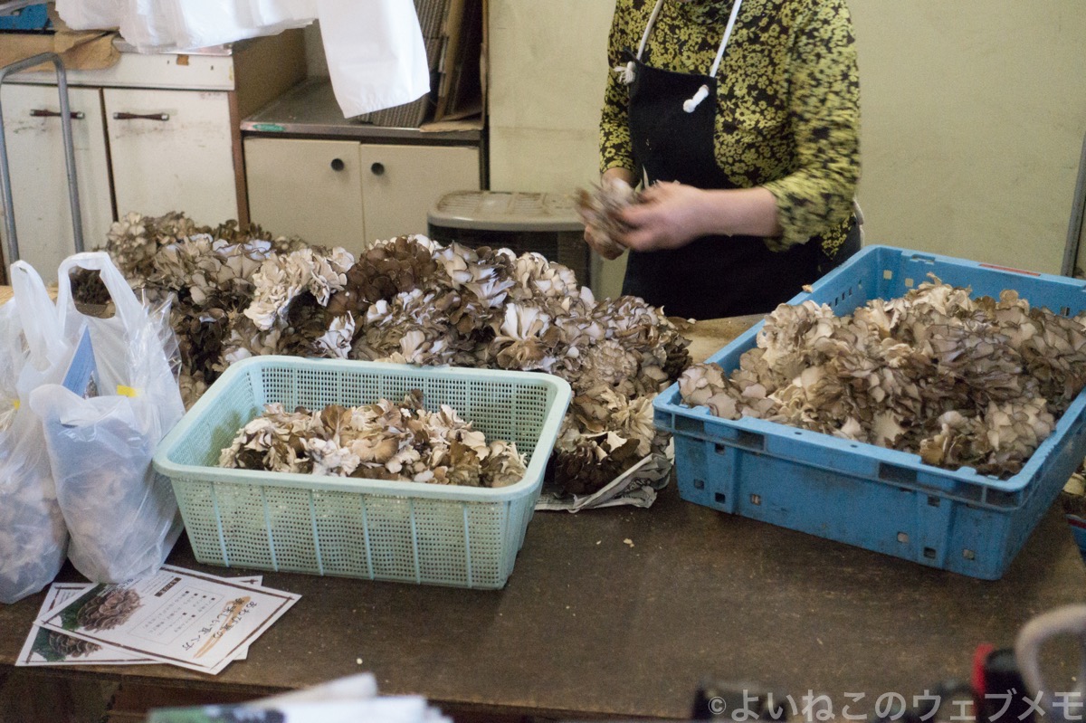 中に入ると、お店の方が舞茸を小分け袋にどんどん詰めている所でした。