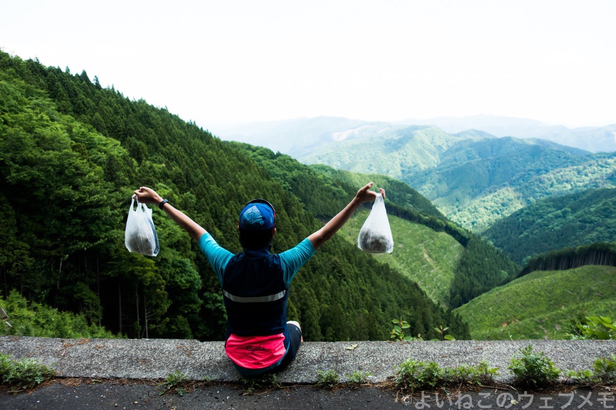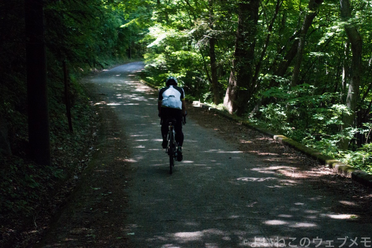 途中、折り返しの所で斜度がキツかったため少しダンシングをすると、見事にこむら返り(ふくらはぎ攣り)し、危うく落車しかけるという事態に。
