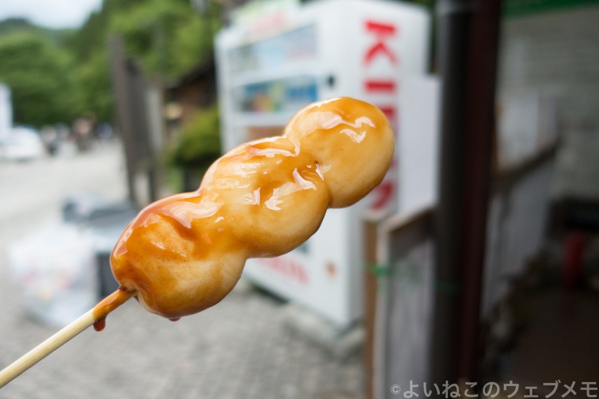 ここへ来たらば食わねばならぬ。カレーパンと三頭団子。