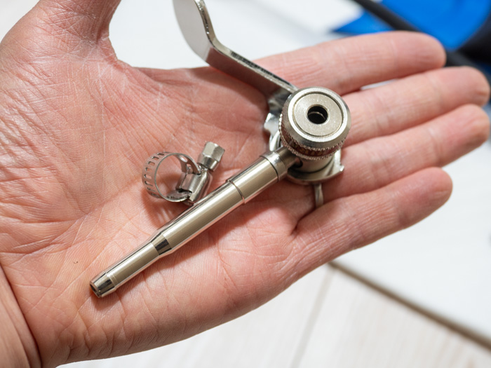 とはいえ、クリックバルブの抜き差ししやすいメリットを享受するためにも、ポンプヘッドをクリックバルブ専用のものに切り替えます。