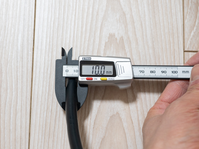 製品の箱にはφ10-11mmのホース径が適合する記載がありました。