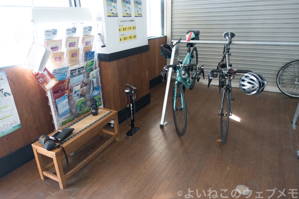なんと屋内で輪行解除などが行えるスペースがあるんです!