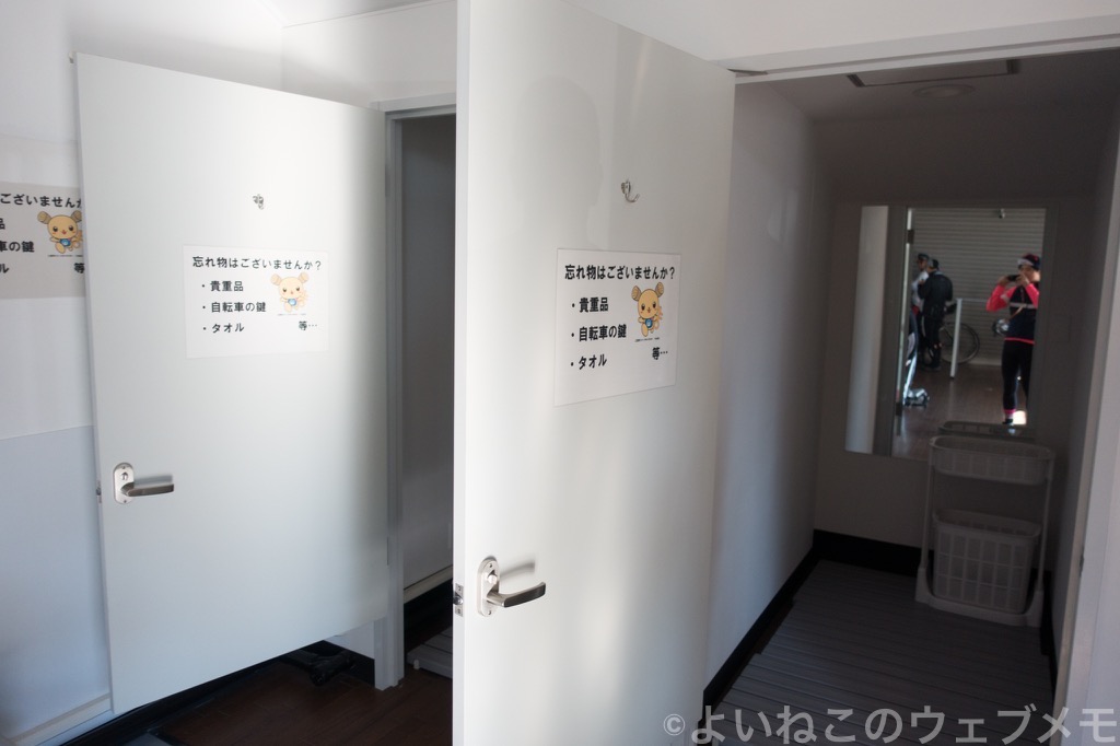 実際に入ってみると、中にはサイクルラックやコインロッカー、そして更衣室まで完備されていました。