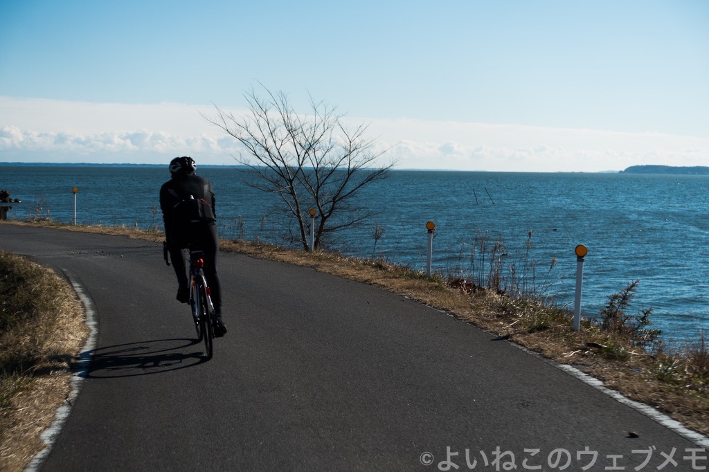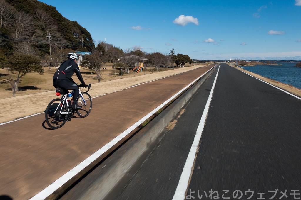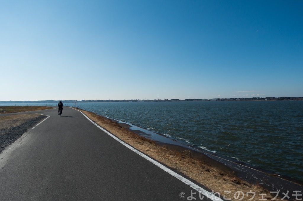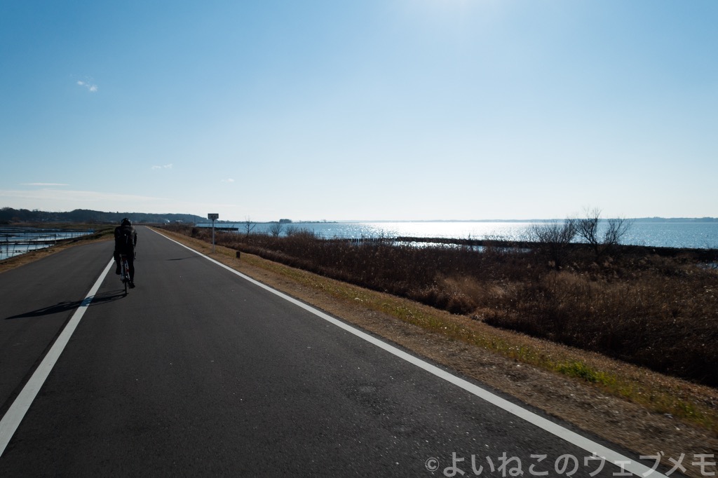 少し走ると、すぐに霞ヶ浦沿いに突入しました。