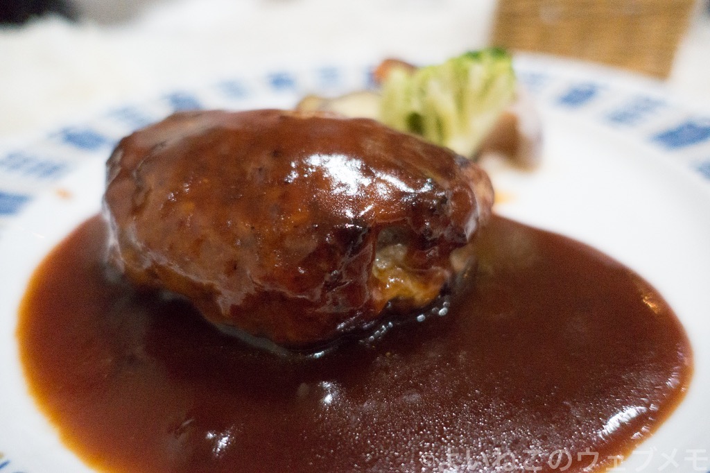 ひとくち食べてみると、程よい硬さの合い挽き肉と、ナツメグの香りがフワッと押し寄せてきます。